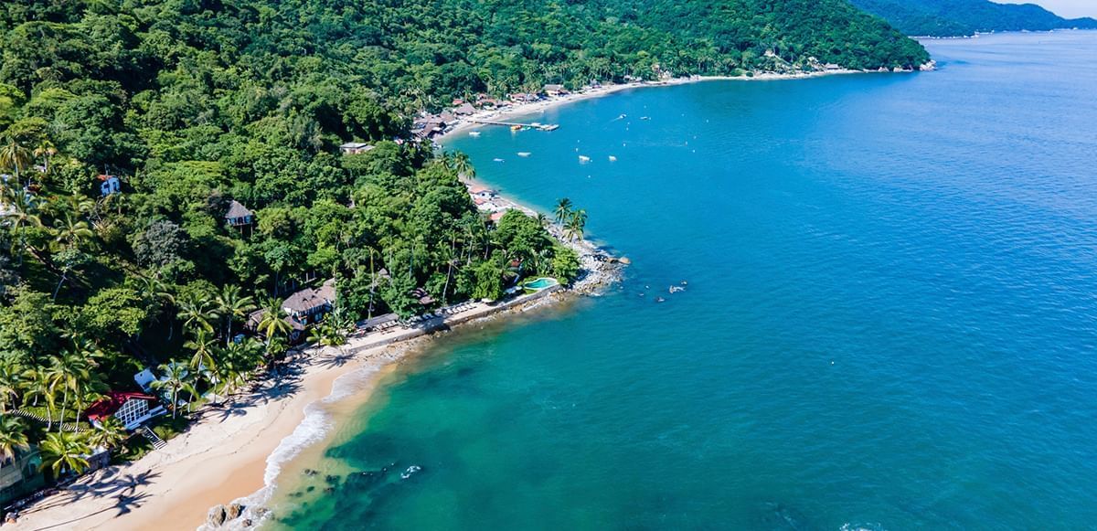 Experience the secluded Playa Conchas Chinas (Chinese Shells Beach), south of El Púlpito on the south end of Los Muertos Beach. Regarded as one of the most beautiful locations in Puerto Vallarta, this beach offers clear blue-green waters, beige sand, and natural pools formed by rocks. Enjoy water activities and savor the beauty of this pristine beach.