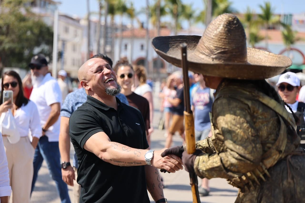 The atmosphere remained relaxed, warm, and genuine — a reflection of Puerto Vallarta itself. Street artists performed nearby, the ocean shimmered just steps away, and sculptures cast long shadows across the boardwalk.