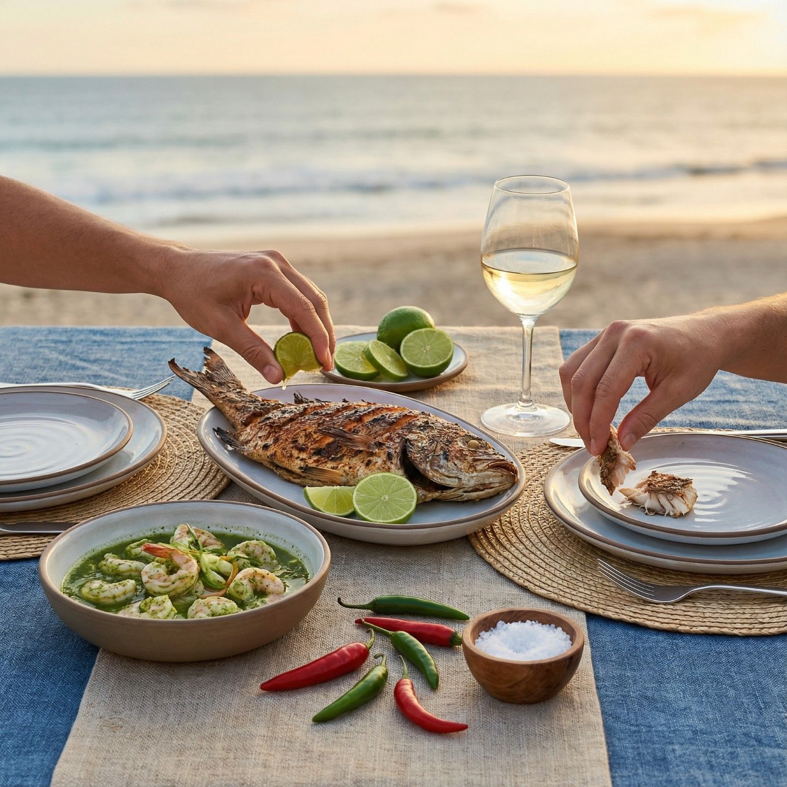 Embers, sea salt, and crisp skin. The ocean served with respect—perfect for long afternoons and chilled glasses.