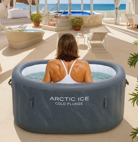 Nuestro Cold Plunge, disponible en Shakti Spa de nuestro hotel hermano, es una experiencia revitalizante con reserva previa. Se ofrece en cortesía de 8:00 a 10:00 hrs para huéspedes de Villa Premiere. Un instante de frescura que despierta cuerpo y mente frente al mar.